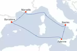 Itinéraire : Barcelone, Palerme, Naples, Ajaccio, Marseille, Barcelone