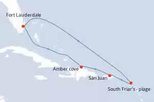 Itinéraire : Fort Lauderdale, Amber cove, San Juan, South Friar's - plage, Sainte Lucie, Antigua, Saint Martin (Antilles Néerlandaises), Fort Lauderdale