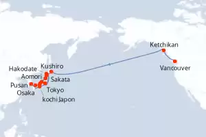 Itinéraire : Vancouver, Ketchikan, Kushiro, Aomori, Tokyo, Osaka, kochi, Hiroshima, Pusan, Sakai-Minato, Tsuruga, Toyama, Sakata, Aomori, Hakodate, Tokyo