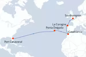 Itinéraire : Port Canaveral, Punta Delgada, Casablanca, La Corogne, Southampton